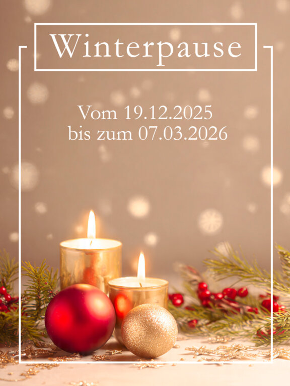 Vom 19.12.2025 bis zum 07.03.2026 sind wir in der Winterpause.